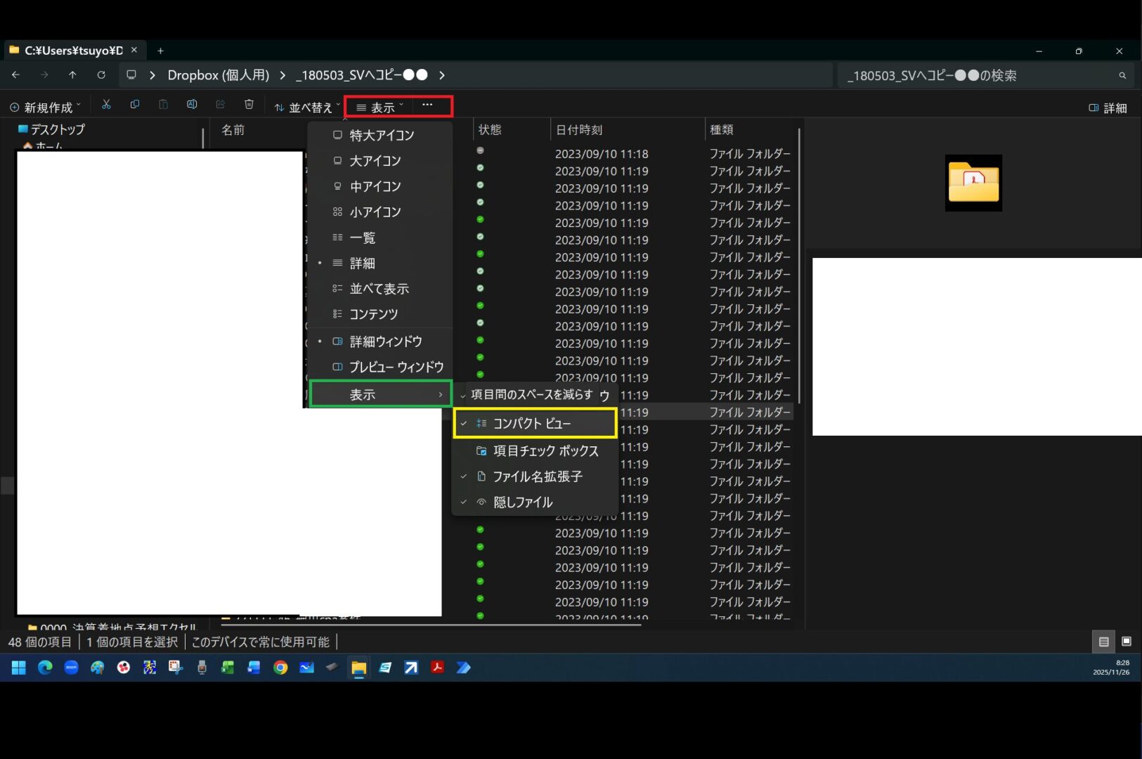 【2025/11/26追記】windows11で、エクスプローラのフォルダ間の行間を狭める設定方法は?