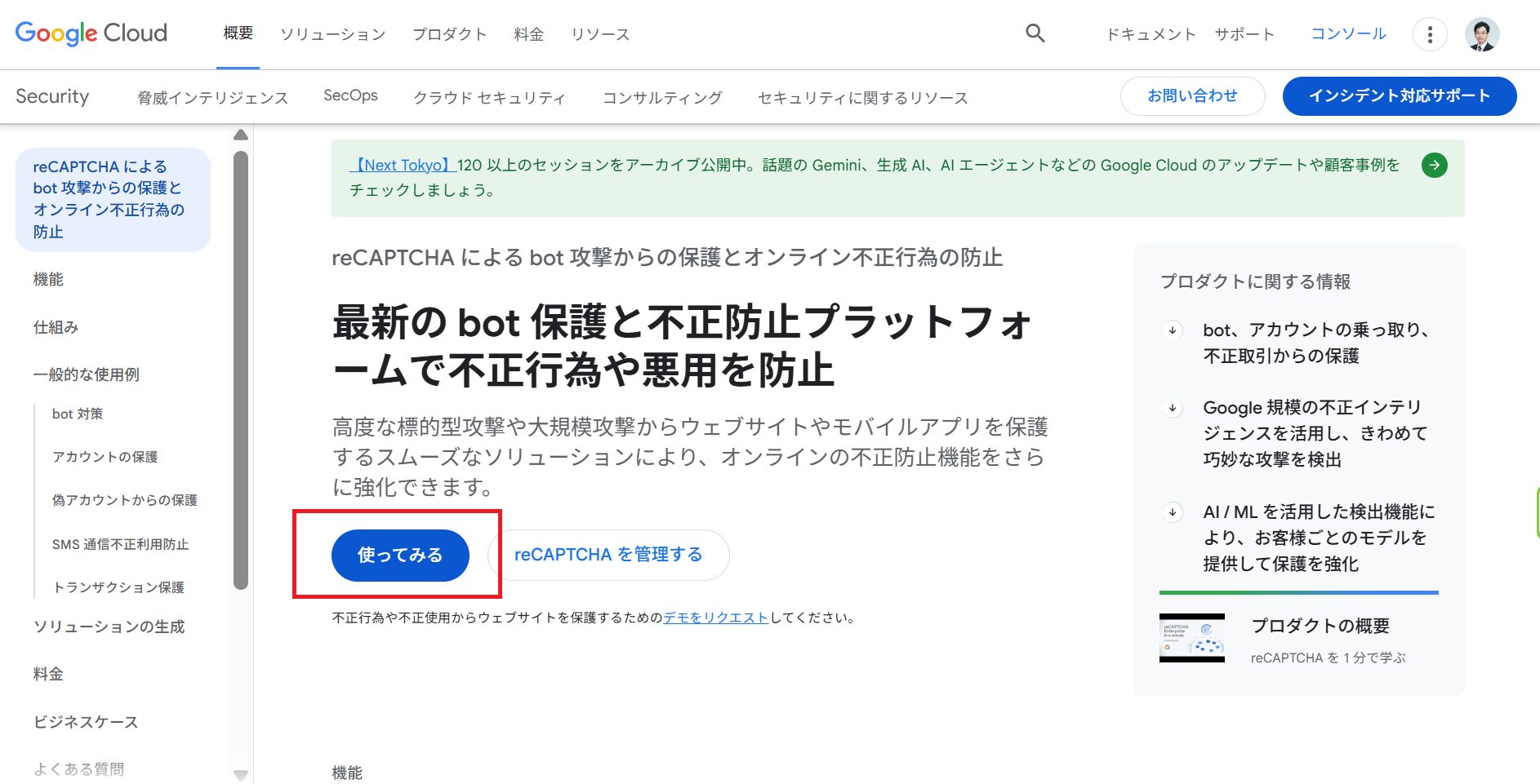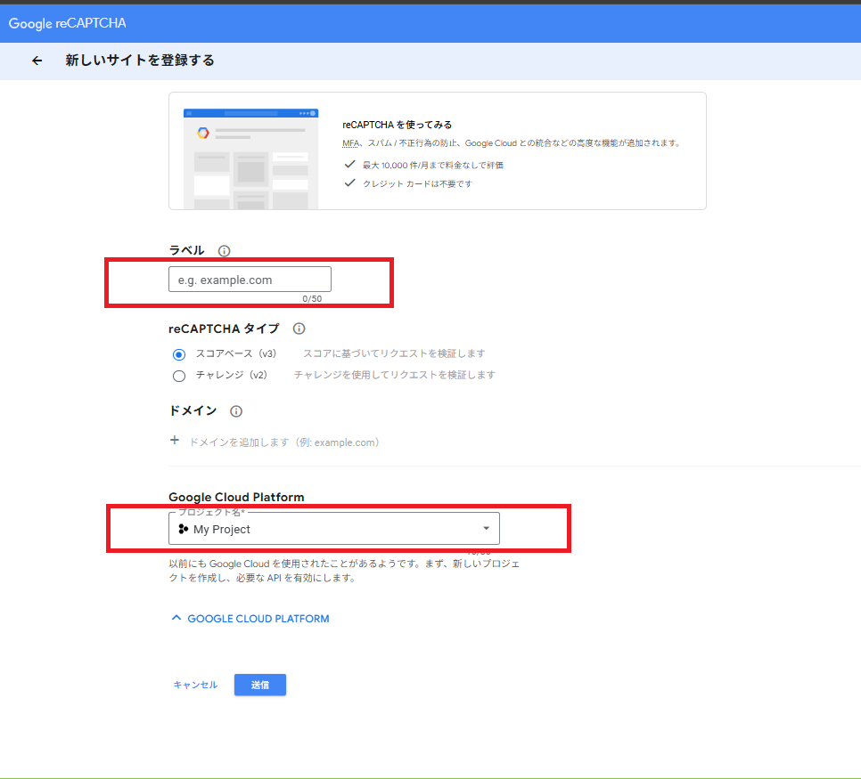 【手順1】reCAPTCHA v3のAPIキーを取得する