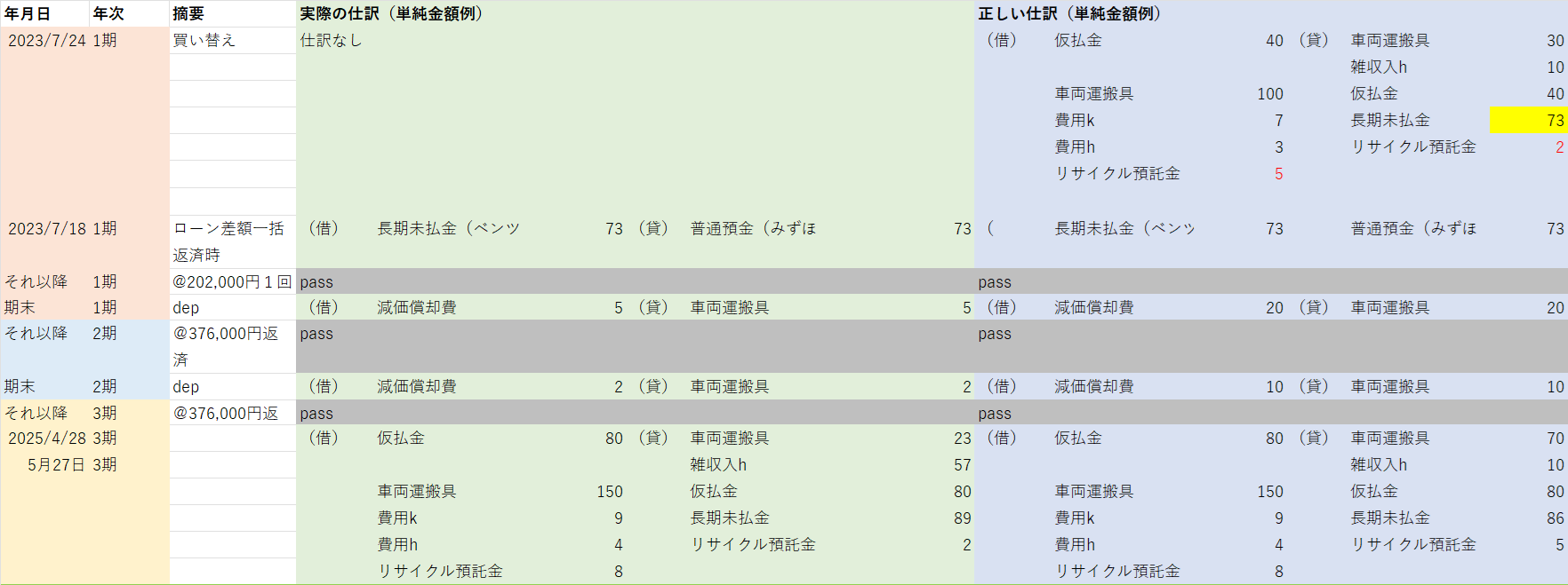 4)法人1期目の7月に、車輌(中古車)を買い替え+法人名義へ+ローンの差額の大部分を 1,150,000円で一括支払いし、残債を組み直しのローン。