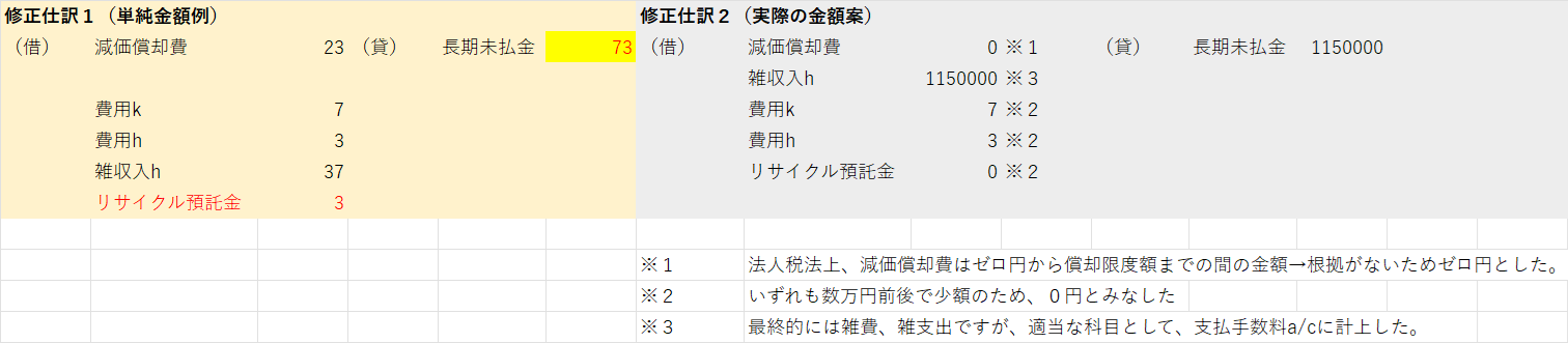 そこで、実際金額に置き換え、かつ、修正仕訳の体裁を整えて、右の修正仕訳2(実際の金額案)の仕訳になる。