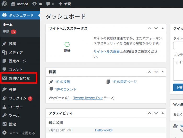 5. 左上の検索窓に「Contact Form 7」と入力します。