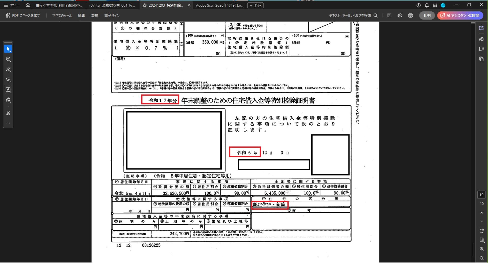 | 認定住宅等の新築等に係る住宅借入金等特別控除の場合で住宅が特例認定住宅等に該当するとき | 認(特家) |